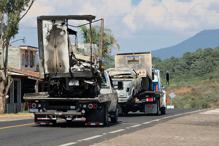 En la carretera Morelia-Quiroga a la altura del municipio de Tzintzuntzan ya se reabrió la vialidad; en Ecuandureo, Ixtlán, Tangamandapio, Zamora y Numarán se trabaja para retirar las unidades que obstruyen las vías de comunicación.