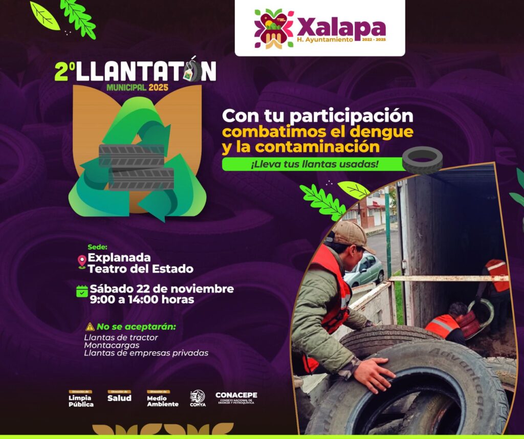 Con el objetivo de contribuir a la eliminación de los criaderos del mosco transmisor del dengue, zika y chikungunya, y promover el manejo adecuado de residuos, el Ayuntamiento de Xalapa invita al segundo Llantatón Municipal 2025.