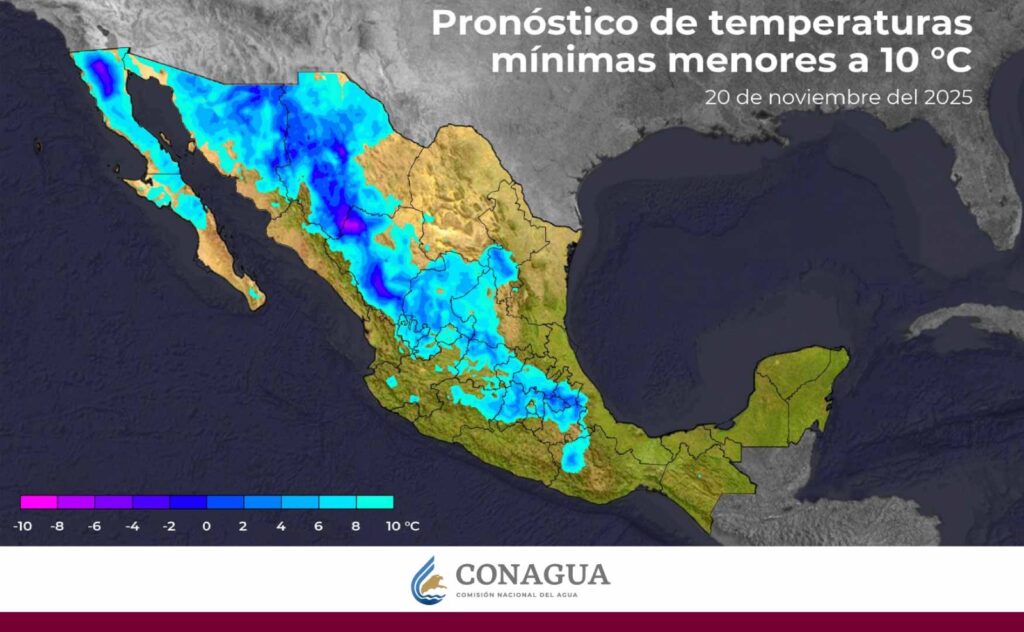Apunta que continuará el ambiente frío a muy frío sobre entidades de la Mesa del Norte y la Mesa Central, con posibles heladas al amanecer.