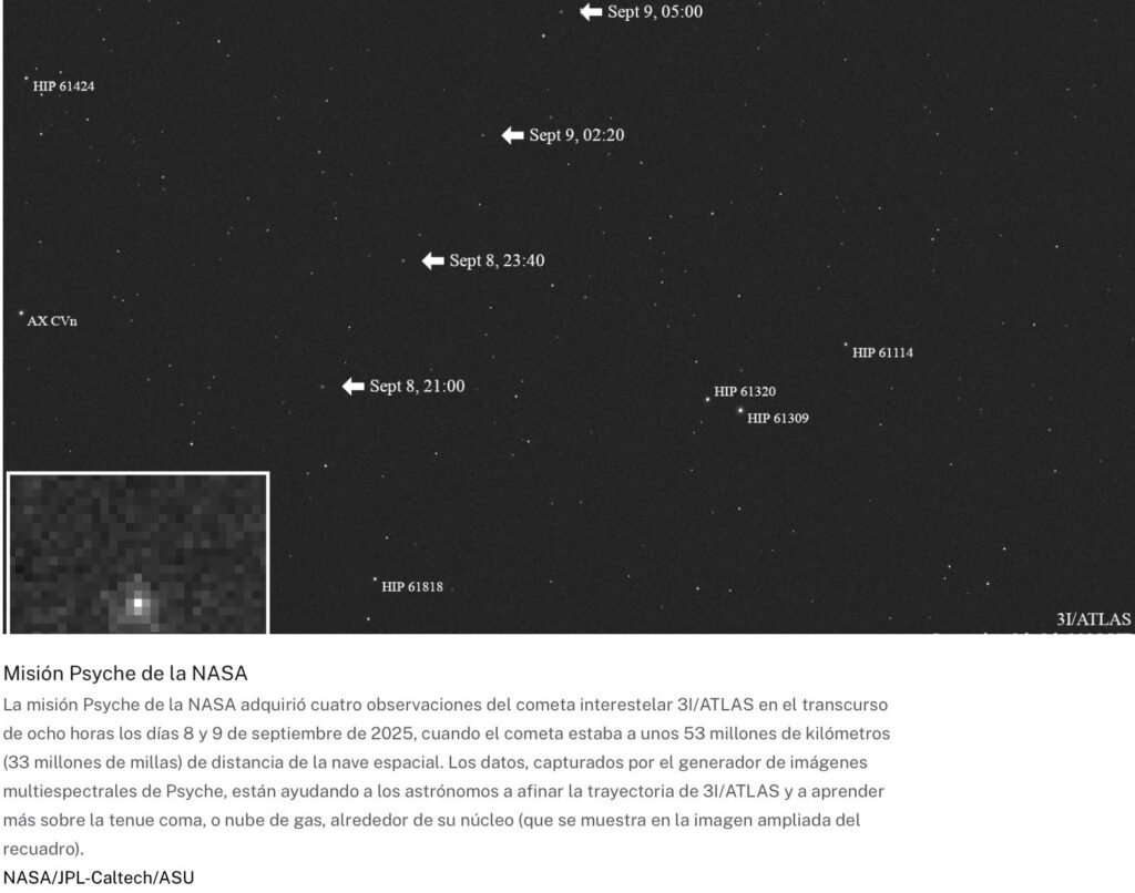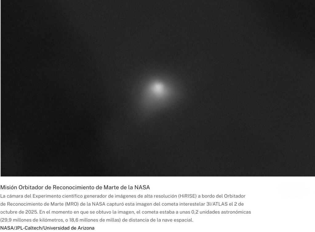 Para obtener más información sobre las observaciones del cometa 3I/ATLAS efectuadas por la NASA, visita el sitio web (en inglés):