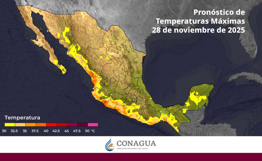 Las temperaturas máximas irán de 35 a 40 °C en Sinaloa, Nayarit, Jalisco, Colima, Michoacán, Guerrero, Oaxaca y Chiapas (istmo y costa).