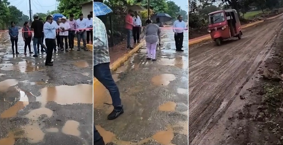 Frente a la cámara y en una transmisión en vivo, exhibió los tramos dañados mientras pobladores exigían suspender el acto.