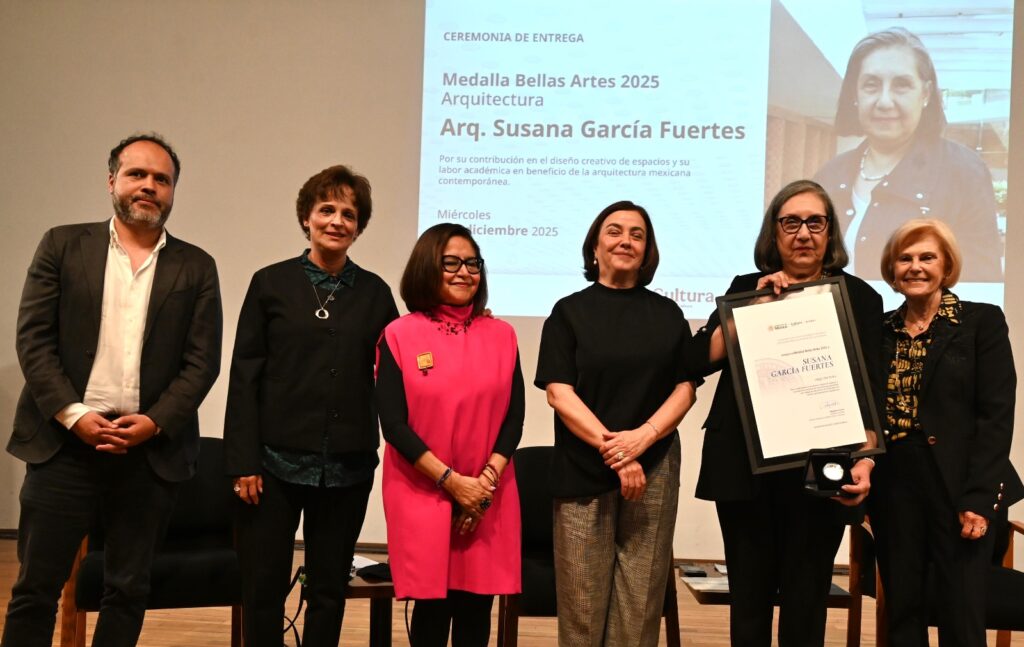 La Secretaría de Cultura del Gobierno de México y el Instituto Nacional de Bellas Artes y Literatura (INBAL) otorgaron la Medalla Bellas Artes 2025 en la disciplina de Arquitectura a Susana García Fuentes.
