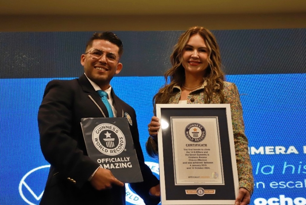 “Oficialmente asombrosa”. De esta manera, describió el representante de los Récord Guinness a la alpinista mexicana Viridiana Álvarez, al momento de reconocerla oficialmente como la primera mujer en la historia en escalar las 14 montañas más altas del planeta y las siete cimas de cada continente.