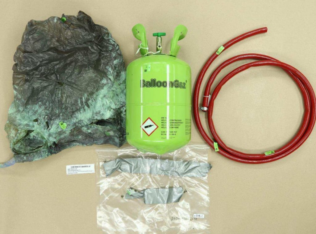 Los investigadores recuperaron objetos del domicilio que coincidían con este método, incluyendo bolsas, cinta adhesiva y equipo relacionado con el gas.