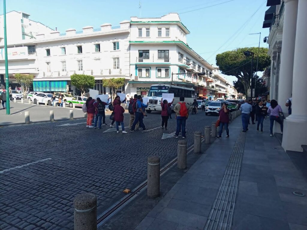 Vuelven a bloquear el centro de Xalapa trabajadores de LEIH exigir pagos de salarios y aguinaldo