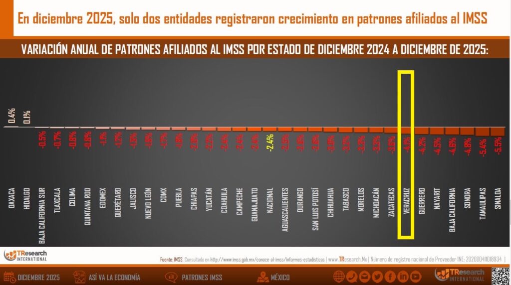 Durante el primer año del gobierno de Rocío Nahle, Veracruz ha vivido un franco desastre en materia de empleo y creación de empresas con afiliación al Instituto Mexicano del Seguro Social (IMSS).La entidad ha estado en una franca recesión, y esto se nota en el descenso de plazas de trabajo formales.Tan sólo en 2025, más […]