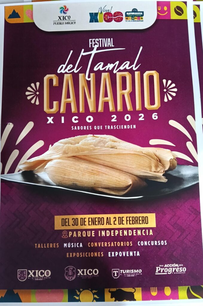 Por otro lado, se indicó que el Festival del Tamal Canario 2026 no será únicamente gastronómico, también se contempla una amplia cartelera cultural y recreativa, entre la que destacan: Presentaciones de mariachis, espectáculos de ballet y danza, talleres para aprender a elaborar tamal canario y tamal de frijol y concursos de tamal canario gigante y tamal de frijol gigante, este último elaborado con polvo de aguacate, una receta característica de Xico