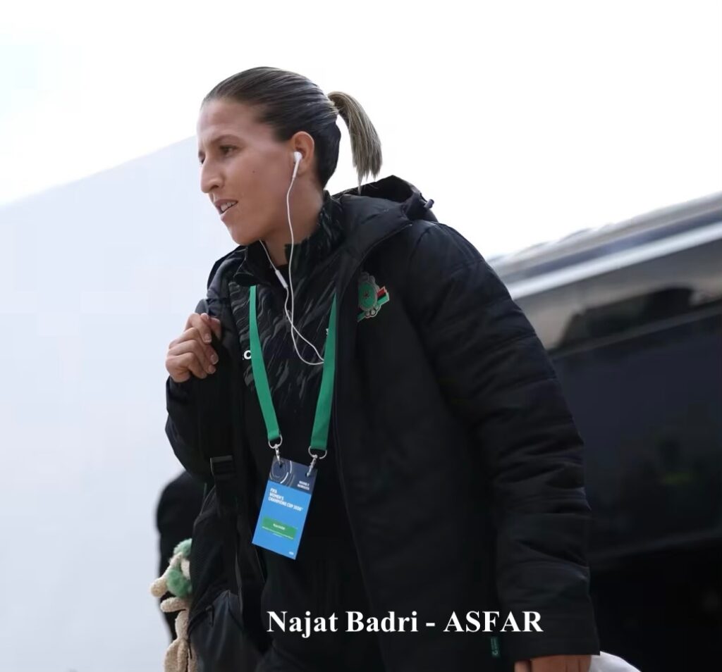 Badri, toda una leyenda del ASFAR, lleva en el club desde 2013 y ha ganado varios trofeos importantes. El palmarés de esta futbolista de 37 años incluye doce campeonatos de la liga marroquí y dos títulos de la Liga de Campeones Femenina de la CAF. Badri, centrocampista que destaca por su serenidad y aplomo, no solo es un ejemplo para sus compañeras, sino que tiene la capacidad de aportar goles y asistencias.