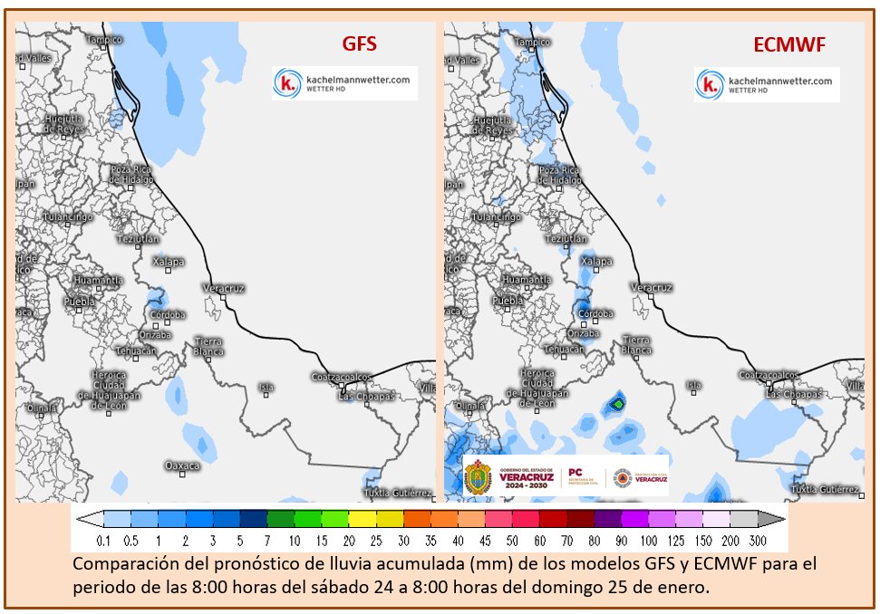 Cielo medio nublado durante el día, con intervalos de chubascos en Tamaulipas y lluvias aisladas en Veracruz. Sin lluvia en Tabasco. Por la mañana, ambiente fresco a templado con bancos de niebla en zonas de la región, con ambiente frío en sierras de Veracruz. Durante la tarde, ambiente de templado a cálido. Viento de componente sur de 20 a 30 km/h con rachas de 40 a 60 km/h en Tamaulipas, y de 10 a 20 km/h con rachas de 30 a 50 km/h en Tabasco y rachas de 35 km/h en Veracruz. Durante la madrugada del domingo, se prevé evento de “Norte”de 30 a 40 km/h con rachas de 60 a 80 km/h y oleaje de 2.0 a 3.0 metros de altura en costas de Tamaulipas.