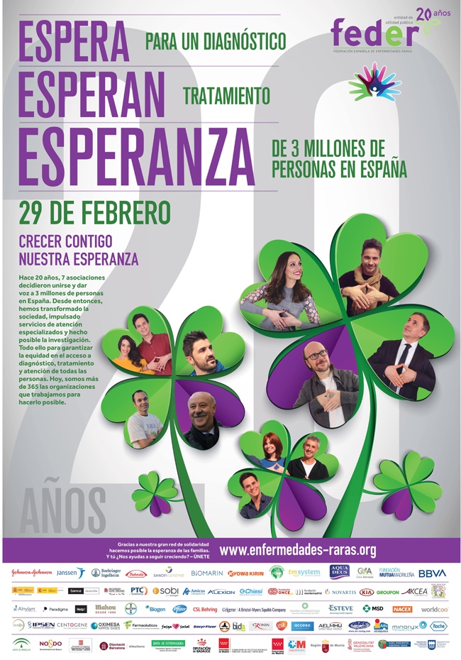 En 2020, FEDER lanza la campaña por el Día Internacional de las Enfermedades Raras con el lema «Crecer contigo, nuestra esperanza», que pondrá el acento en el movimiento asociativo que lucha cada día por la mejora de la calidad de vida de los más de tres millones de personas que viven en España con alguna patología poco frecuente.