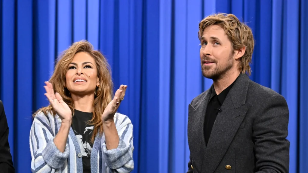 Un año después, con el histórico éxito de Ryan Gosling como Ken en Barbie –que le valió una nominación al Oscar y su inolvidable interpretación de I’m Just Ken en el Dolby Theatre–, Eva Mendes explicó las razones de no posar juntos en la alfombra roja, ni siquiera en la noche de los Oscar. Eva Mendes le apoyó desde backstage y compartió una foto desde el camerino camerino, luciendo la chaqueta y el sombrero con el que había actuado su marido en la gala: «Siempre al lado de mi hombre. Has conseguido llevar a Ken hasta los Oscar. Ahora, vamos a casa, tenemos que acostar a las niñas», señaló haciendo gala de su extraordinario sentido del humor. En más de una ocasión ambos han explicado que no se sienten cómodos exponiendo su vida privada y es, por ello, que esta aparición juntos en el programa de Jimmy Fallon rompe su regla de oro para delirio absoluto de sus fans.