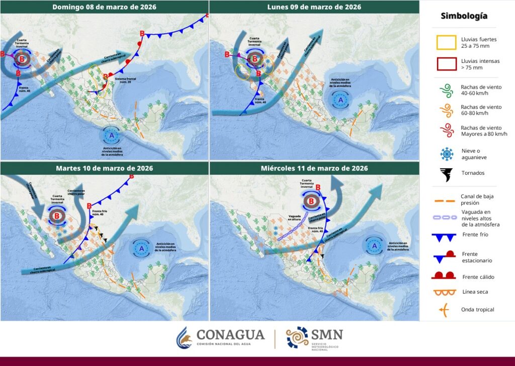 El Servicio Meteorológico Nacional vigila el desarrollo de la Cuarta Tormenta Invernal de la temporada sobre el noroeste mexicano.