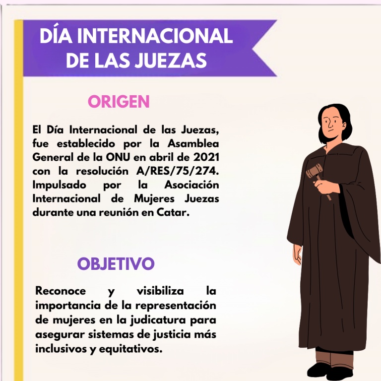 En abril del año 2021 la Asamblea General de las Naciones Unidas proclamó el día 10 de marzo como Día Internacional de las Juezas, para rendir un merecido homenaje a aquellas mujeres que desempeñan el cargo de jueces en los sistemas judiciales de todo el mundo.
