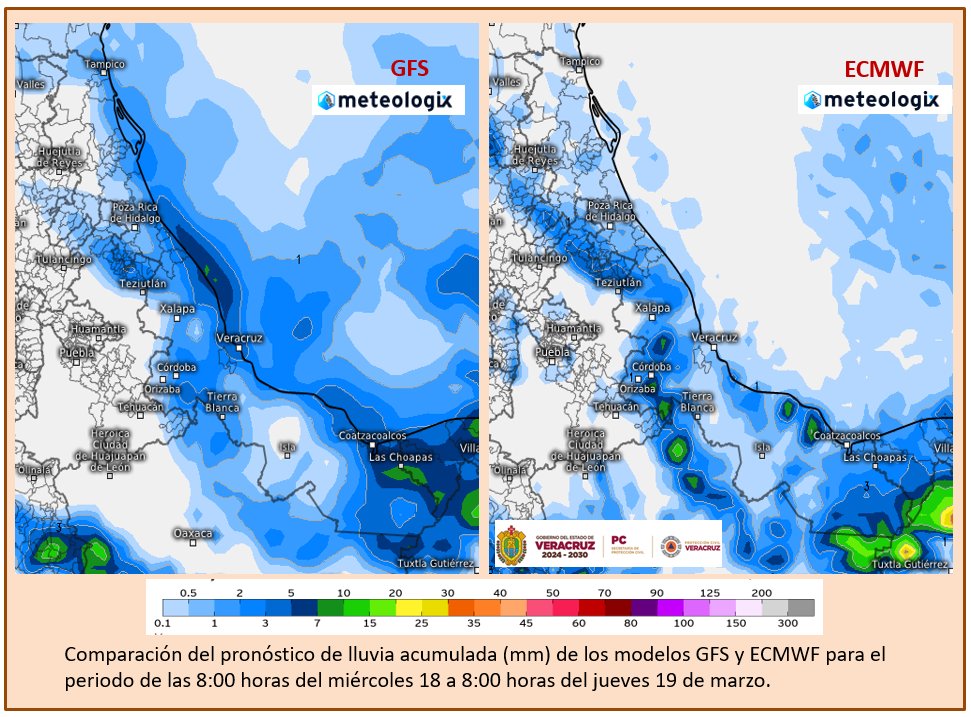 También viento de 50 a 70 km/h en Yucatán y Quintana Roo; y de 30 a 50 km/h en Veracruz (sur), Tabasco y Campeche.