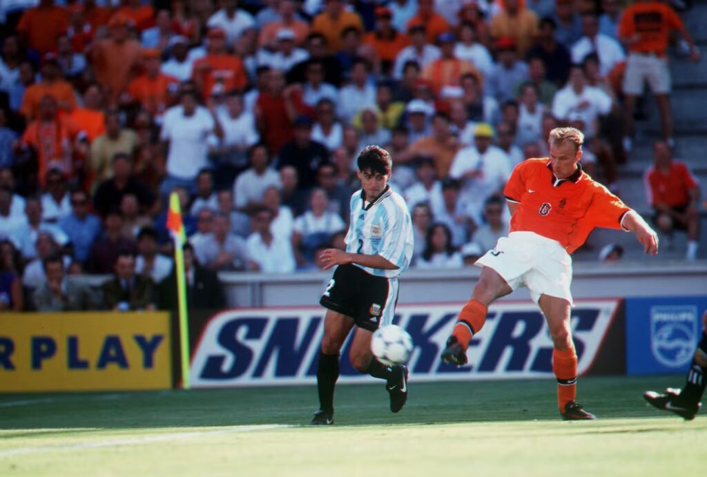 En Marsella, Argentina y Países Bajos sostenían un pulso de enorme exigencia por el pase a semifinales, que se resolvió con la intervención de Dennis Bergkamp. Patrick Kluivert, el otro delantero de referencia del equipo de Guus Hiddink, abrió el marcador en el minuto doce con el remate de un centro de cabeza del propio Bergkamp. Argentina reaccionó de inmediato. Claudio López, al límite del fuera de juego, rompió la línea defensiva rival y definió entre las piernas de Edwin van der Sar apenas cinco minutos después. El duelo, áspero desde el inicio, se tensó aún más con las expulsiones del neerlandés Arthur Numan y del argentino Ariel Ortega.