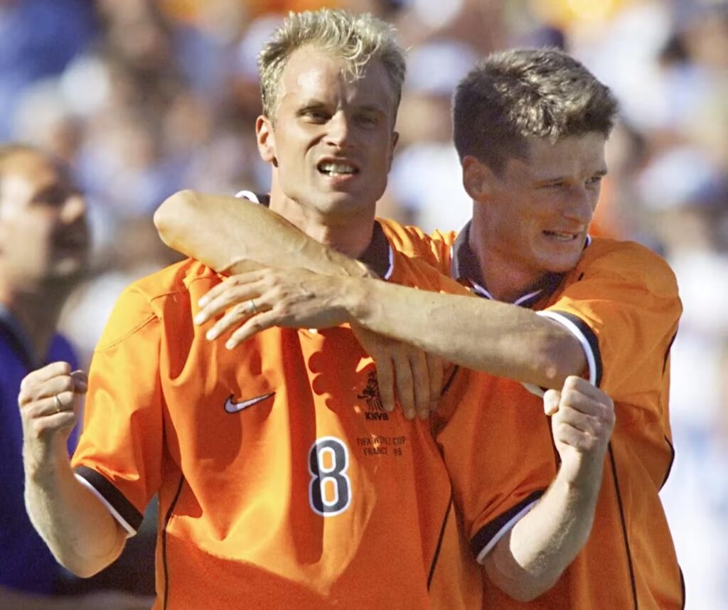 El partido entraba en el minuto 90. El marcador seguía 1-1, ambos equipos jugaban con diez y la prórroga parecía inevitable. Entonces, pese al cielo despejado de aquella tarde de verano en la ciudad mediterránea, un relámpago sacudió el Vélodrome. Todo nació de una intuición certera del capitán Frank de Boer, que desde su propio campo buscó a Bergkamp con un pase largo y medido. Nadie interpretaba mejor que él los movimientos de su compañero. «Lo primero es que exista esa conexión con el pasador: tú tienes que saber que el balón te va a llegar donde debe y él debe saber que vas a atacar ese espacio. Luego, te abres el hueco. Lo segundo es que el pase sea bueno, pero eso ya no depende de mí», explica Bergkamp entre risas.