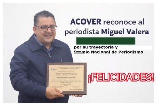 Reconoce ACOVER al periodista Miguel Valera por su trayectoria y Premio Nacional de Periodismo.