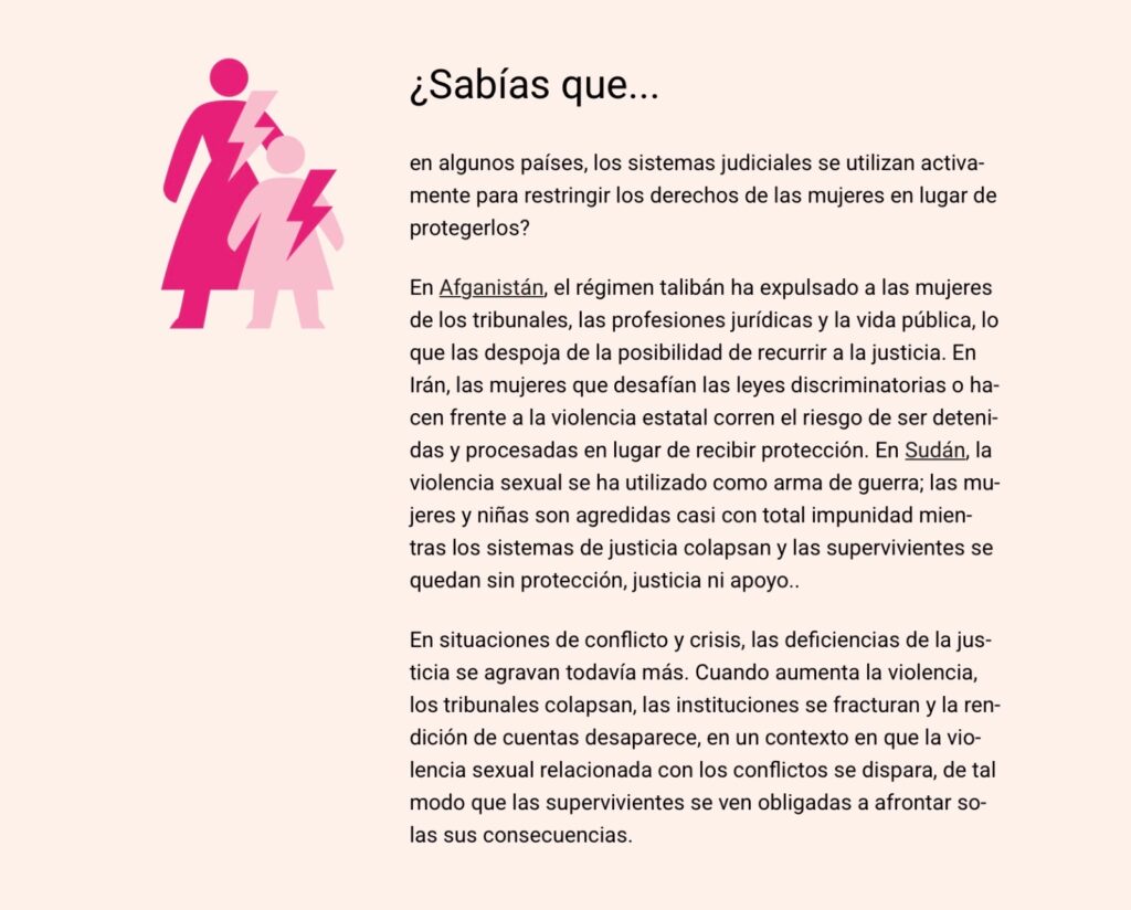 Se habla de impunidad cuando se producen daños sin consecuencias. Cuando no se exigen responsabilidades a los autores de esos daños. Cuando se niega protección, reconocimiento o reparación a las supervivientes. Cuando las leyes existen sobre el papel pero no funcionan en la práctica, o cuando están sesgadas contra las mujeres y niñas y no ofrecen un acceso real a la justicia.