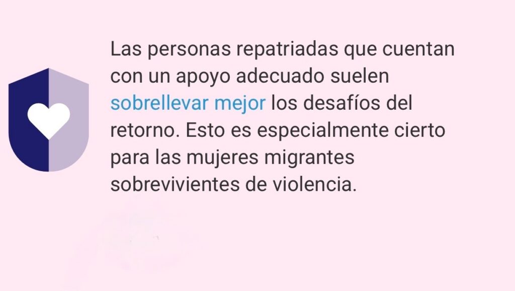 Para muchas mujeres, el peligro comienza en el momento en que inicia la migración. Sin información confiable sobre migración segura, sin dinero y sin documentos válidos, crece el riego de exposición a la violencia de género, al engaño y a la explotación, desde mucho antes de llegar a sus destinos.