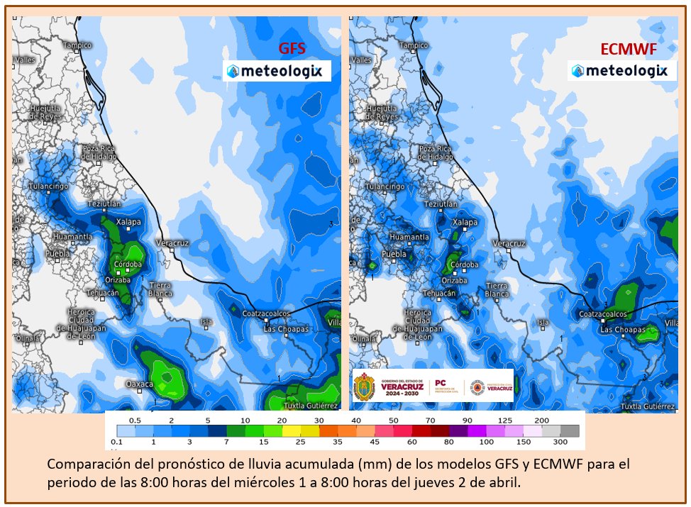 Cielo medio nublado a nublado durante el día, con lluvias puntuales muy fuertes en Tabasco y lluvias fuertes en Veracruz, las cuales se acompañarán con descargas eléctricas y posible caída de granizo, además podrían originar encharcamientos, inundaciones y deslaves; además de chubascos en Tamaulipas. Por la mañana ambiente fresco a templado en la región, y muy frío en zonas serranas de Veracruz. Durante la tarde, ambiente cálido en la región y caluroso en Tamaulipas. Viento de componente sur de 30 a 40 km/h con rachas de 50 a 70 km/h en Tamaulipas; de dirección variable y misma intensidad en Tabasco; además de rachas de 30 a 50 km/h en Veracruz. Oleaje de 1.5 a 2.5 metros de altura en las costas de Tabasco.