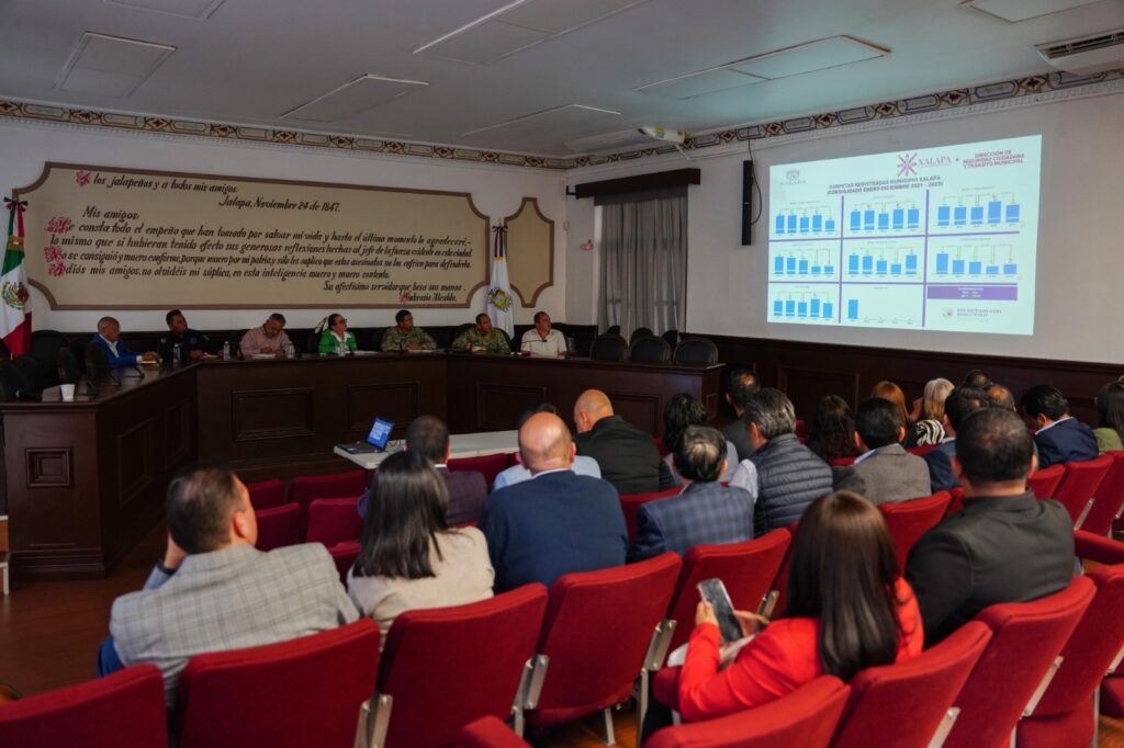 Como parte del encuentro en el que participaron representantes de cámaras como Canacintra, Coparmex, CMIC, Canaco, el Colegio de Arquitectos, el Consejo Empresarial Metropolitano de Xalapa y la Asociación Mexicana de Mujeres Empresarias, el Director de Seguridad Ciudadana y Tránsito Municipal, Cap. Corb. I. M. P. Alfonso Gómez Vázquez, presentó un informe de las incidencias delictivas a la baja y acciones realizadas en la materia en este primer trimestre del año.