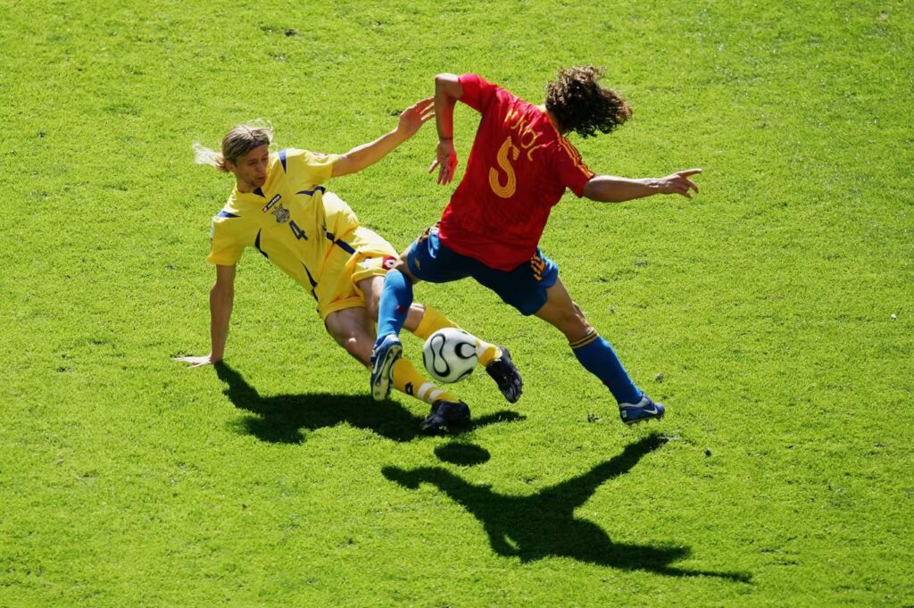 Puyol se llevó por delante a Andriy Vorobey e interceptó el adidas Teamgeist+. Luego, con Anatoliy Tymoshchuk llegando con todo y como claro favorito para quedarse con la pelota, ‘El Tiburón’ sacó algo que nadie sabía que tenía en su repertorio: un giro de 360° que le permitió salir con el balón dominado y dejó al ucraniano desparramado en el suelo.