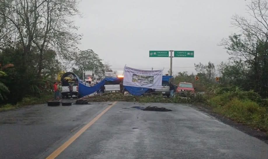 Continúa bloqueo de la carretera Tuxpan–Tampico; exigen obras y mejoras de caminos ninguna autoridad ha acudido a dialogar