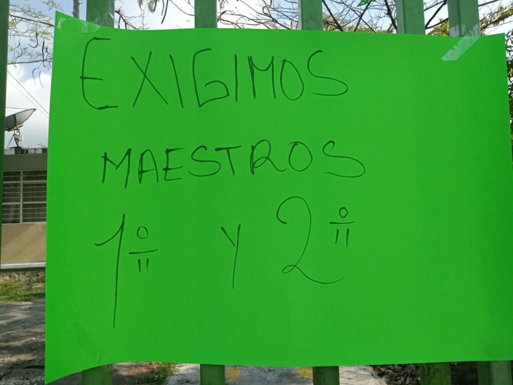 Los manifestantes dieron a conocer que desde el año pasado carecen de estos docentes, pese a que han hecho las gestiones respectivas, éstas no han sido atendidas por parte de las autoridades educativas competentes.