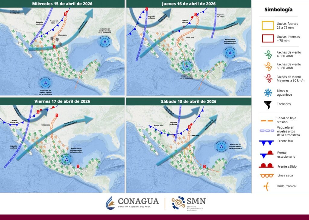 Dichos sistemas ocasionarán intervalos de chubascos en Coahuila, Nuevo León, Tamaulipas y San Luis Potosí; además de lluvias aisladas en Chihuahua y Zacatecas.