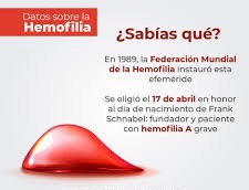El 17 de abril de cada año se celebra en todo el mundo el Día Mundial de la Hemofilia, una fecha proclamada por la Federación Mundial de Hemofilia (FMH) que eligió la fecha en conmemoración del nacimiento de su fundador Frank Schnabel, un hombre de negocios de Montreal, nacido con hemofilia A grave. Su visión era mejorar el tratamiento y la atención para los cientos de miles de hemofílicos en todo el mundo, a través de una nueva organización internacional.