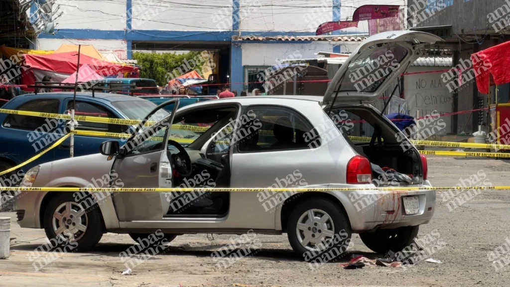 El vehículo se detuvo frente a tres individuos que se encontraban sentados en la cajuela de un automóvil Chevy, afuera de los baños del mercado y a unos metros de un puesto de micheladas.
