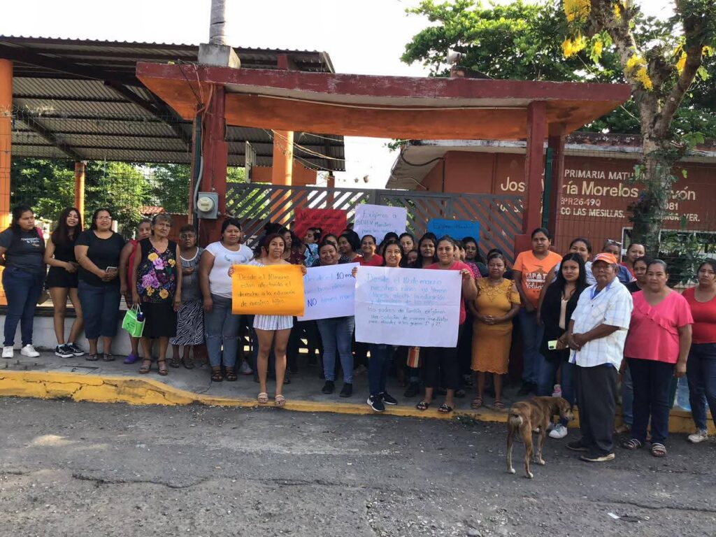 Yanga, Ver.- Padres y madres de familia de la Escuela Primaria José María Morelos y Pavón de la localidad de San Francisco Las Mesillas, de este municipio, tomaron las instalaciones del plantel para exigir la asignación de dos docentes para los grupos de 1° y 2° grado, que desde el pasado 10 de marzo no cuentan con ellos.