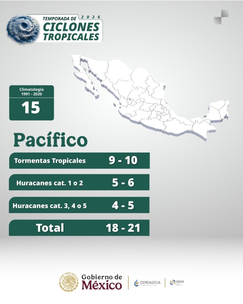 El Servicio Meteorológico Nacional, dependiente de la Comisión Nacional del Agua (Conagua), presentó de manera oficial el pronóstico para la temporada de lluvias y ciclones tropicales 2026.