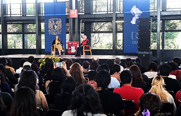 El geógrafo británico estuvo acompañado por la directora de la Facultad de Filosofía y Letras (FFyL), Mary Frances Rodríguez Van Gort, quien destacó que la participación de Harvey en el homenaje al profesor emérito de la Facultad de Economía, Enrique Semo, se debe a que ambos confluyen en cómo comprender el capitalismo como un proceso diferenciado y en creciente transformación.