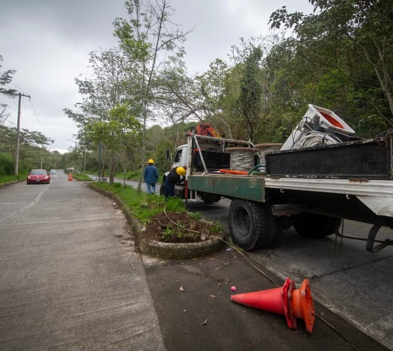 Personal de Alumbrado Público restablece luminarias en el fraccionamiento Las Fuentes de Xalapa