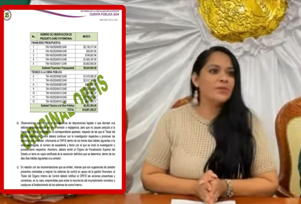 Kristel Hernández Topete y camarilla con un pie en la cárcel Si la alcaldesa de Santiago Tuxtla Brianda Kristel Hernández Topete no solventa las observaciones que el Órgano de Fiscalización Superior le ha detectado en cuenta pública 2024, será sujeta al fincamiento de una responsabilidad penal por el delito de daño patrimonial. El ORFIS le […]